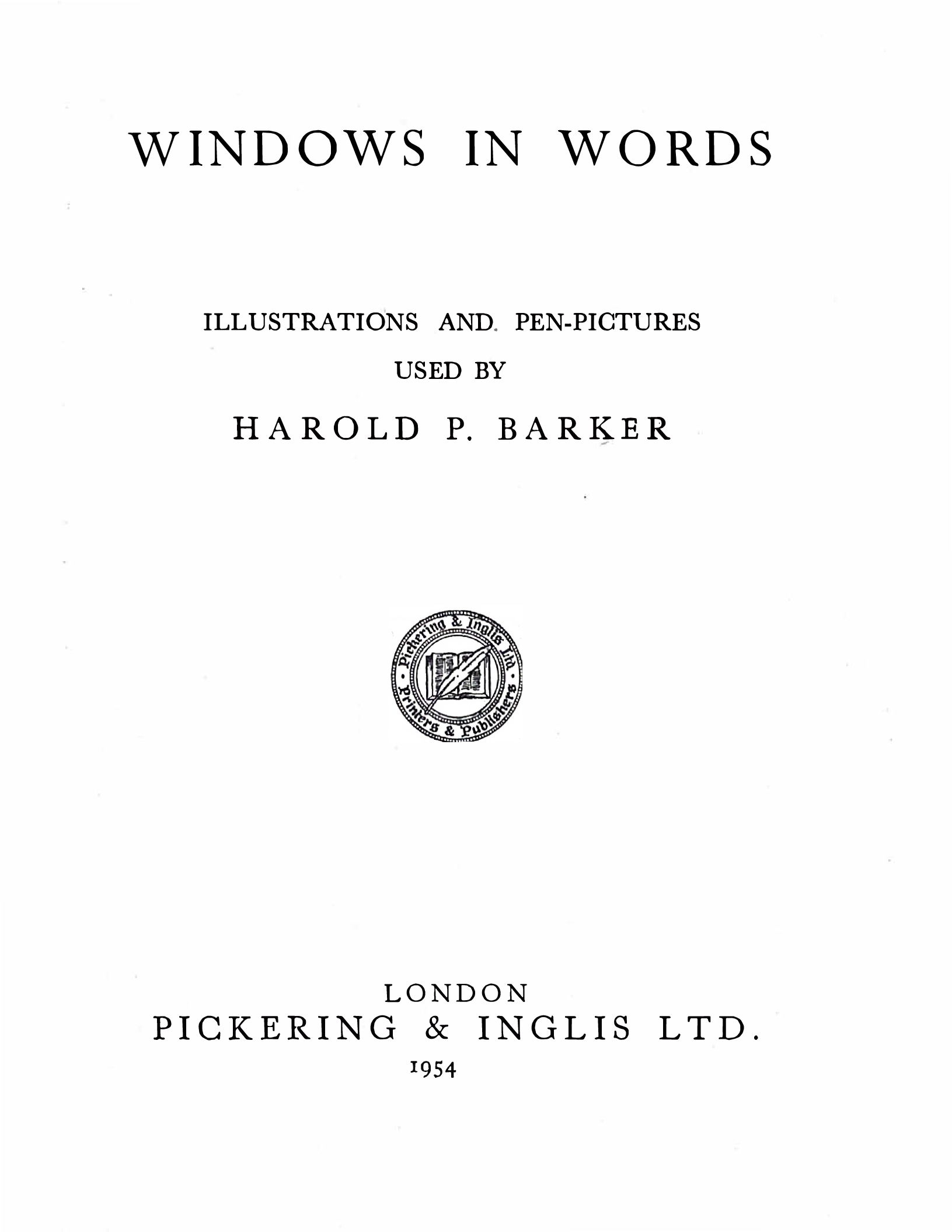 Windows in Words. Illustrations and Pen-Pictures Used by Harold P. Barker