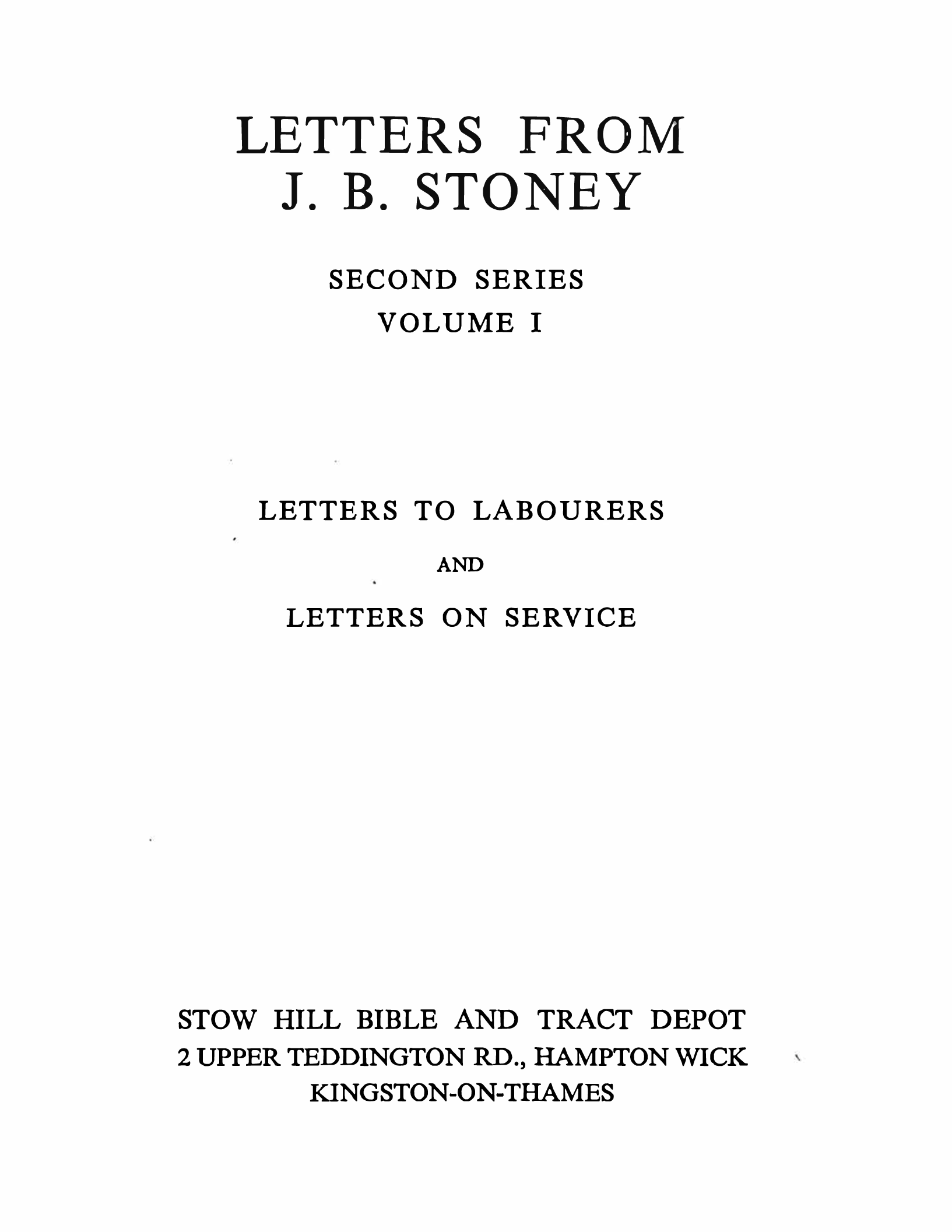 Volume 1; Letters to Labourers and Letters on Service.