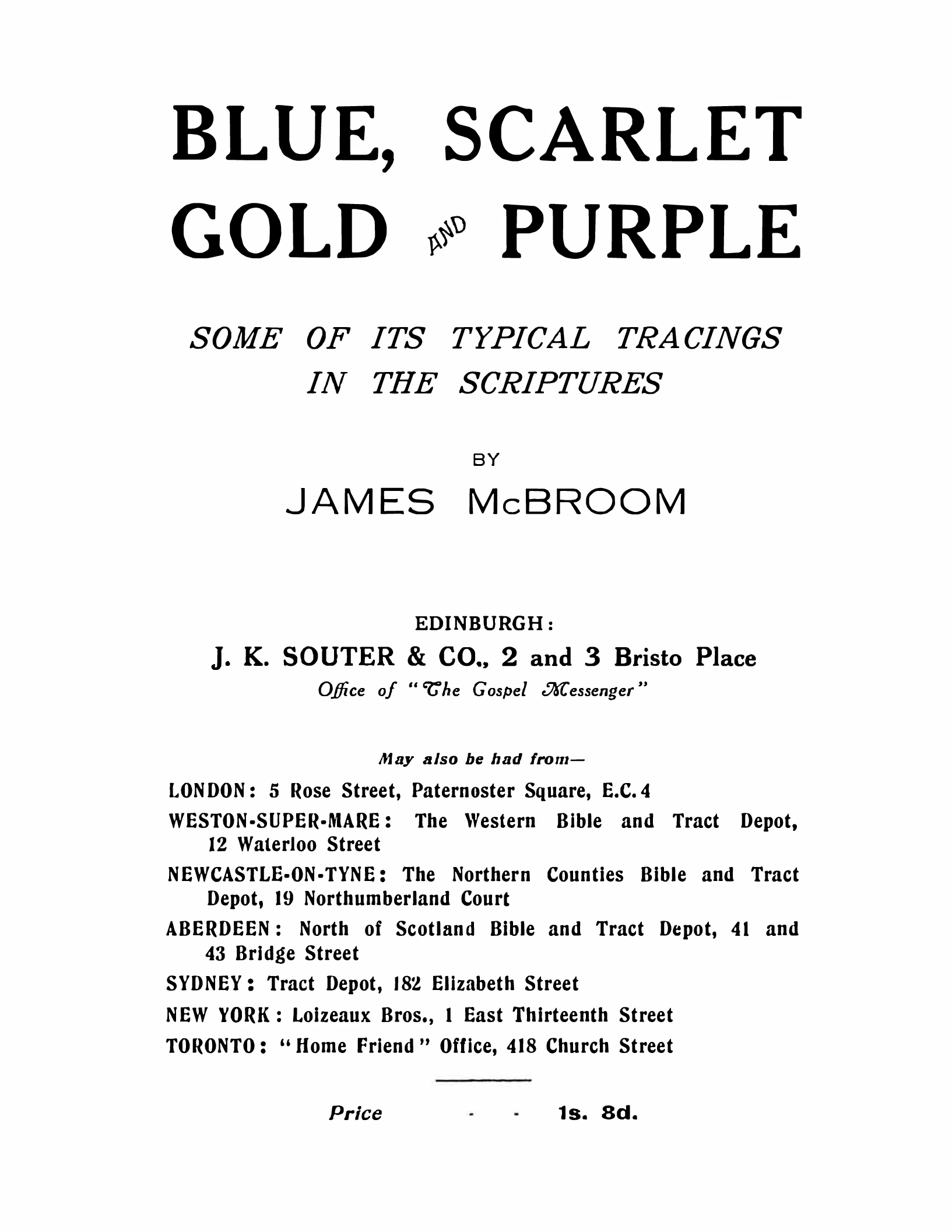 Blue, Scarlet, Gold and Purple - Some of Its Typical Tracings in the Scriptures