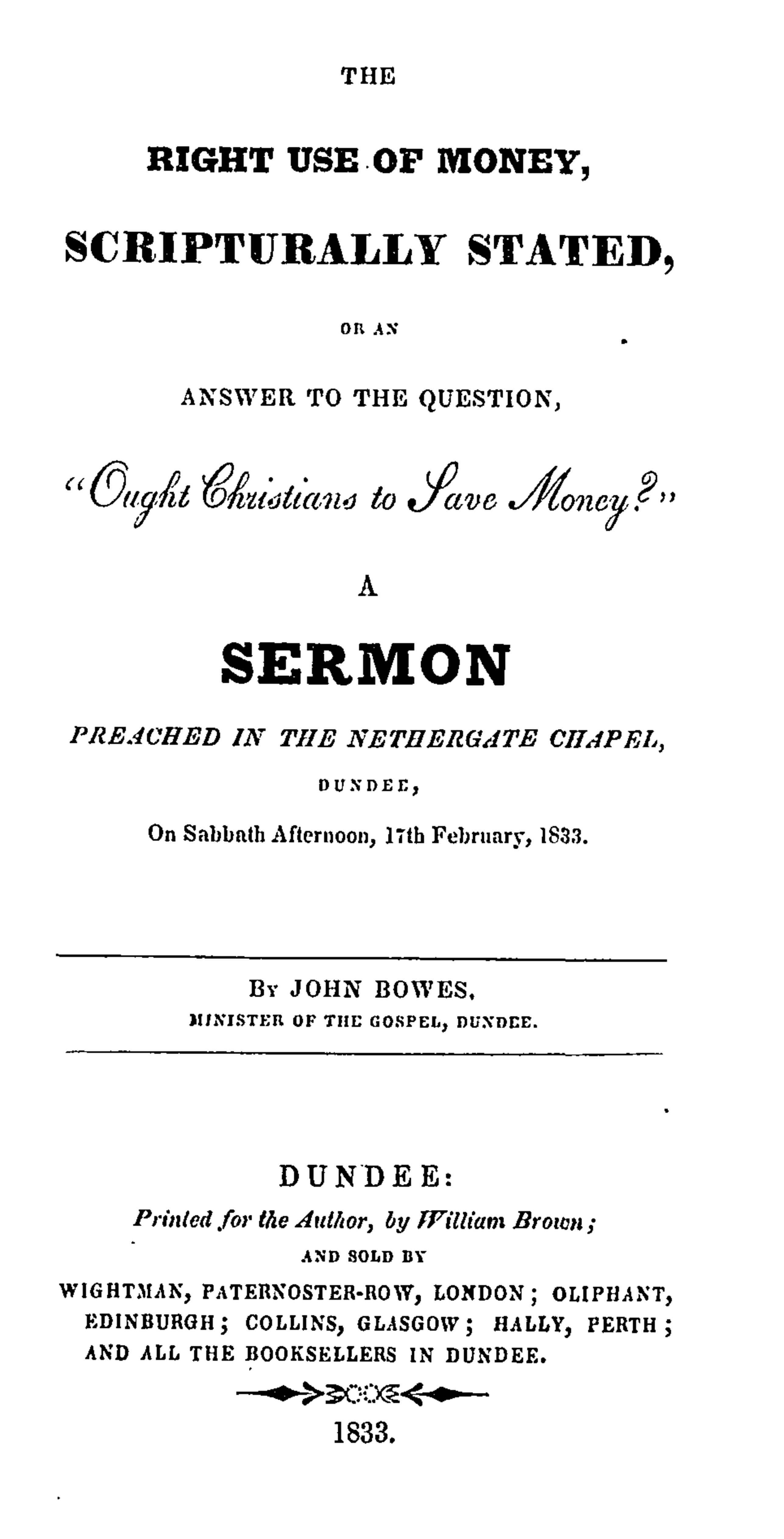 The Right Use of Money, Scripturally Stated, or, An Answer to the Question, "Ought Christians to Save Money?"