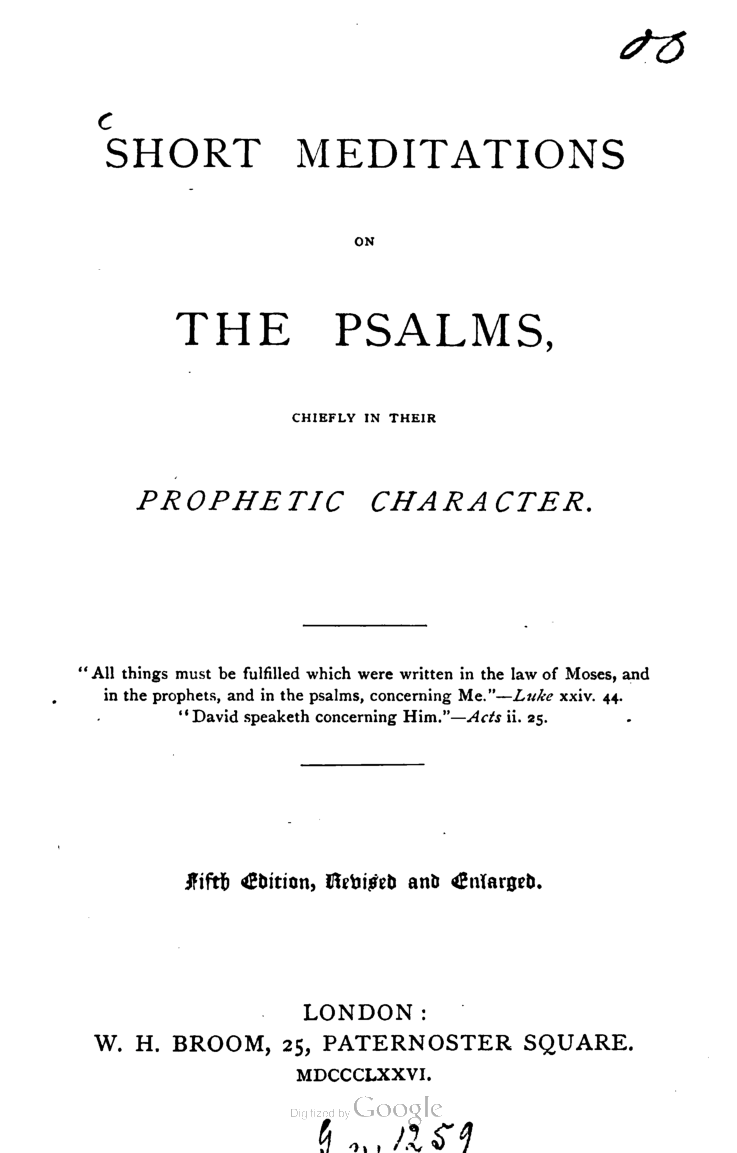 Short Meditations on the Psalms, Chiefly in their Prophetic Character