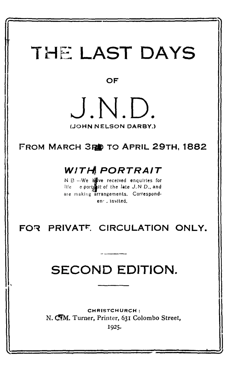 First edition seems to have been in 1905, see; https://www.brethrenarchive.org/on-the-brethren-trail/places/bournemouth/sundridge-house/