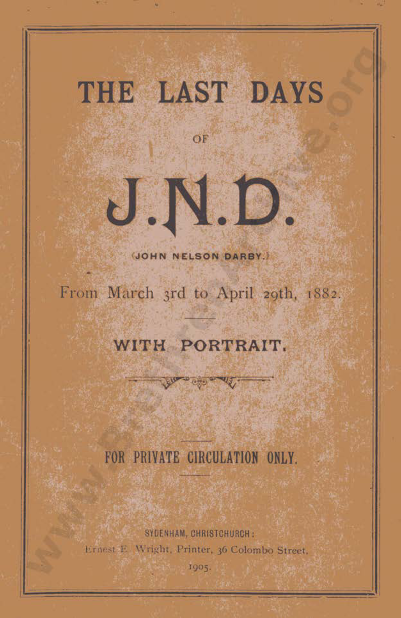 The Last days of J.N.D. (John Nelson Darby) From March 3rd to April 29th 1882