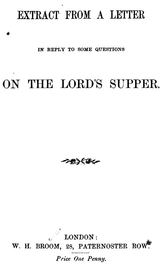 Extract from a Letter in Reply to Some Questions on the Lord's Supper