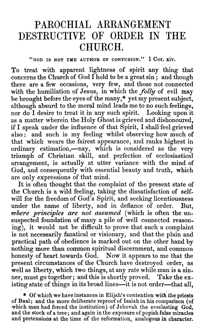 Parochial Arrangement Destructive of Order in the Church