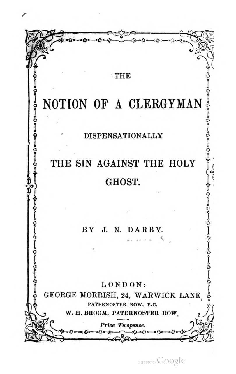 The Notion of a Clergyman Dispensationally the Sin Against the Holy Ghost