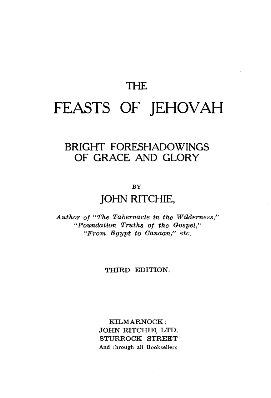 The Feasts Of Jehovah: Bright Foreshadowings Of Grace And Glory