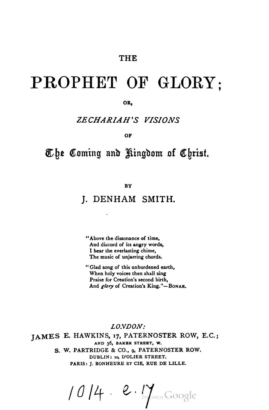 The Prophet of Glory; or, Zechariah's Visions of the Coming and Kingdom of Christ