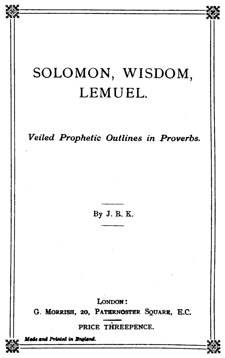 Solomon, Wisdom, Lemuel. Veiled Prophetic Outlines in Proverbs