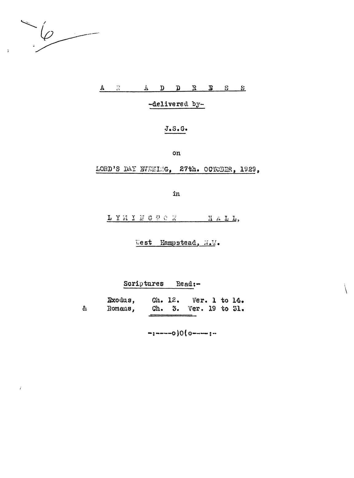 Notes of Addresses at Lymington Hall, West Hampstead