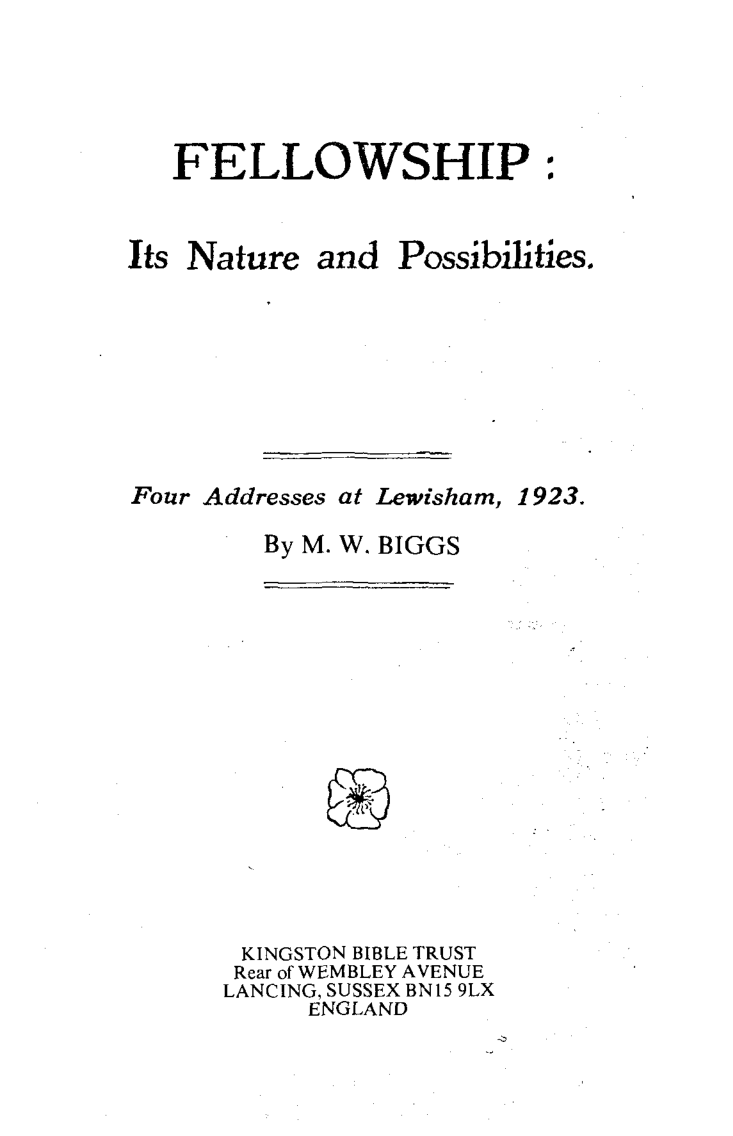 Fellowship: Its Nature and Possibilities.