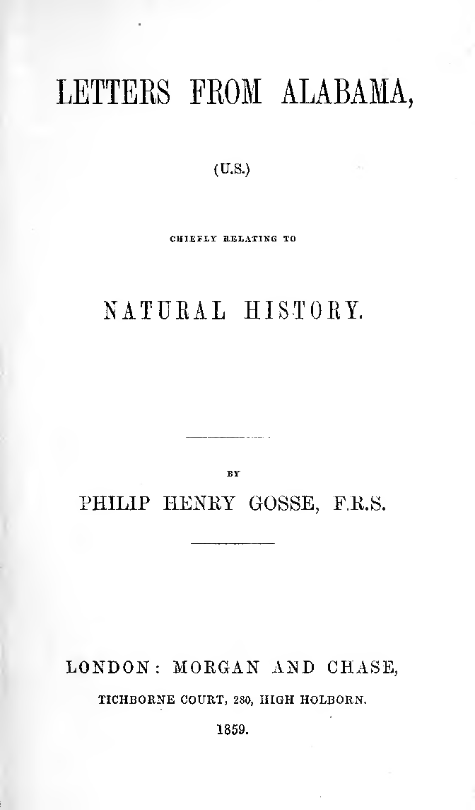 Letters from Alabama, (U.S.) Chiefly Relating to Natural History