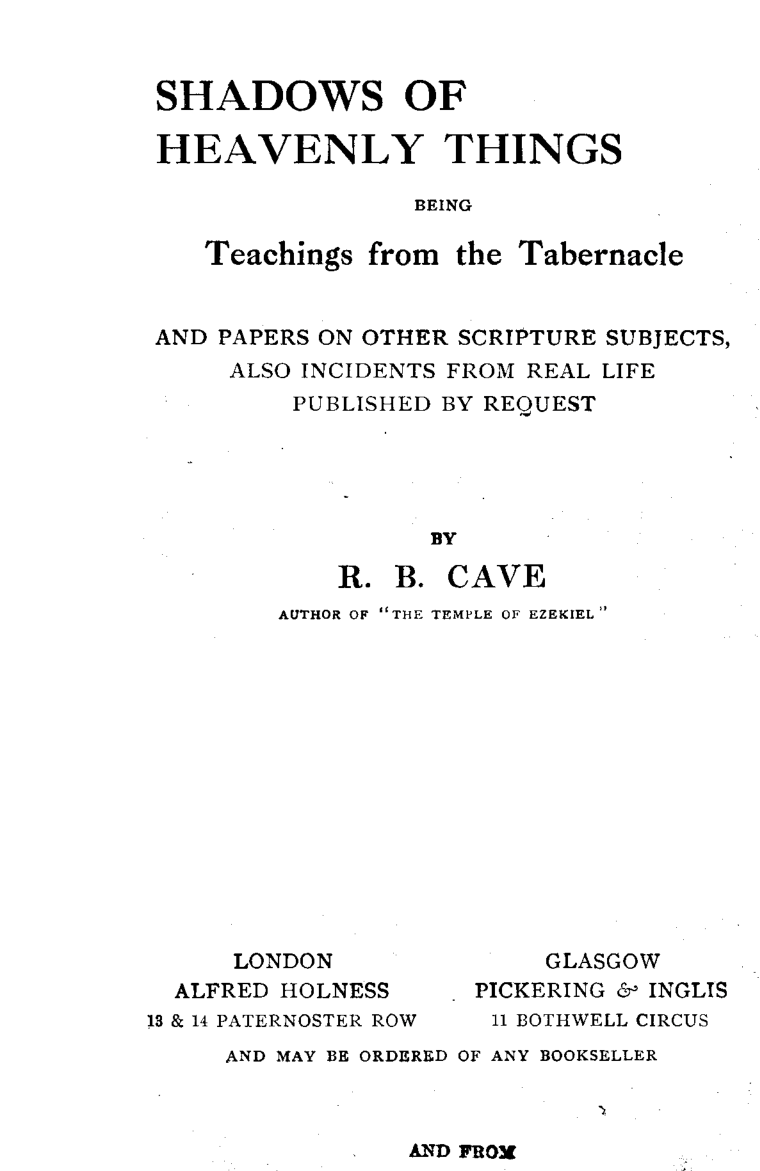Shadows of Heavenly Things; Being Teachings from the Tabernacle, and Papers on Other Scripture Subjects, Also incidents from Real Life Published by Request