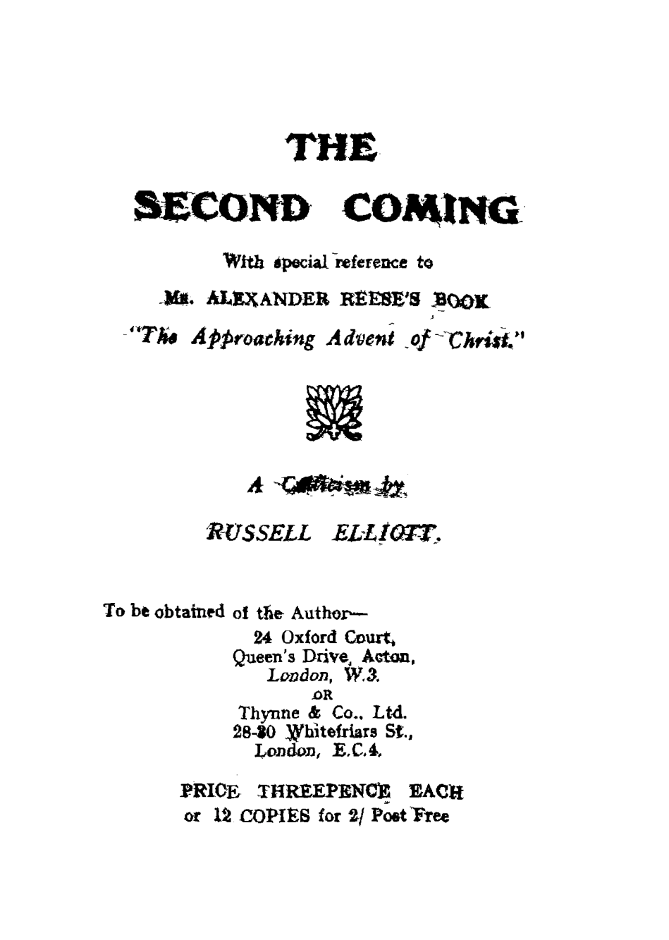 The Second Coming - With Special Reference to Mr Alexander Reese's Book "The Approaching Advent Of Christ"