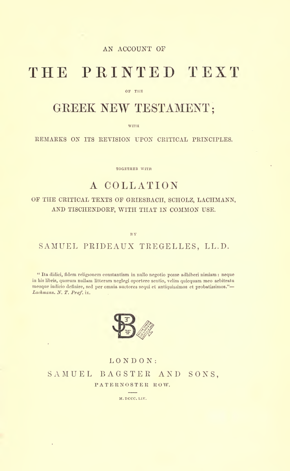 Unable to access Tregelles’ “Account of the Printed Text of The Greek New Testament”. Clicking on link to view, only takes us to the front page of the website .
