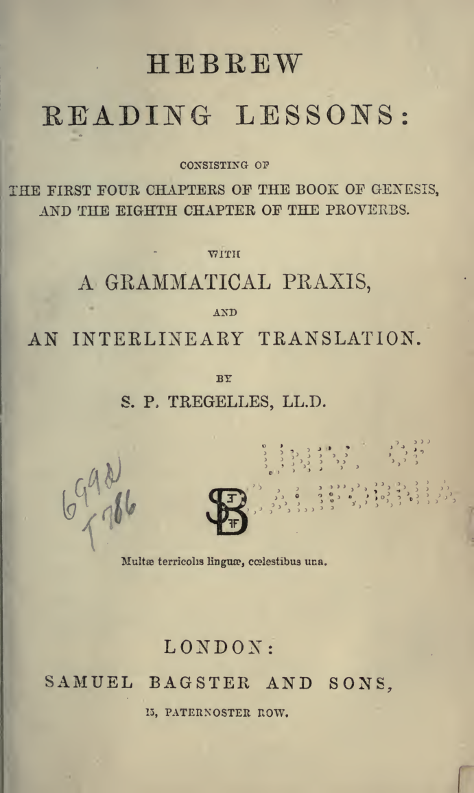 Hebrew Reading Lessons: Consisting of the first four chapters of the book of Genesis, and the eighth chapter of the Proverbs