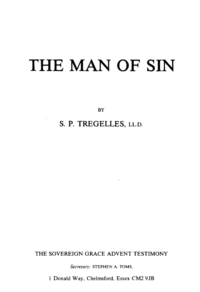 Samuel Prideaux Tregelles's paper on 'The Man of Sin' originally appeared anonymously in The Inquirer iii (June 1840) pp. 241-256. It is accessible on line at https://www.google.com/books/edition/_/NUIEAAAAQAAJ?gbpv=1 . I refer to it briefly in my Life and Times of Samuel Prideaux Tregelles: A Forgotten Scholar (Palgrave Macmillan, 2020) 127 n.19. Timothy Stunt