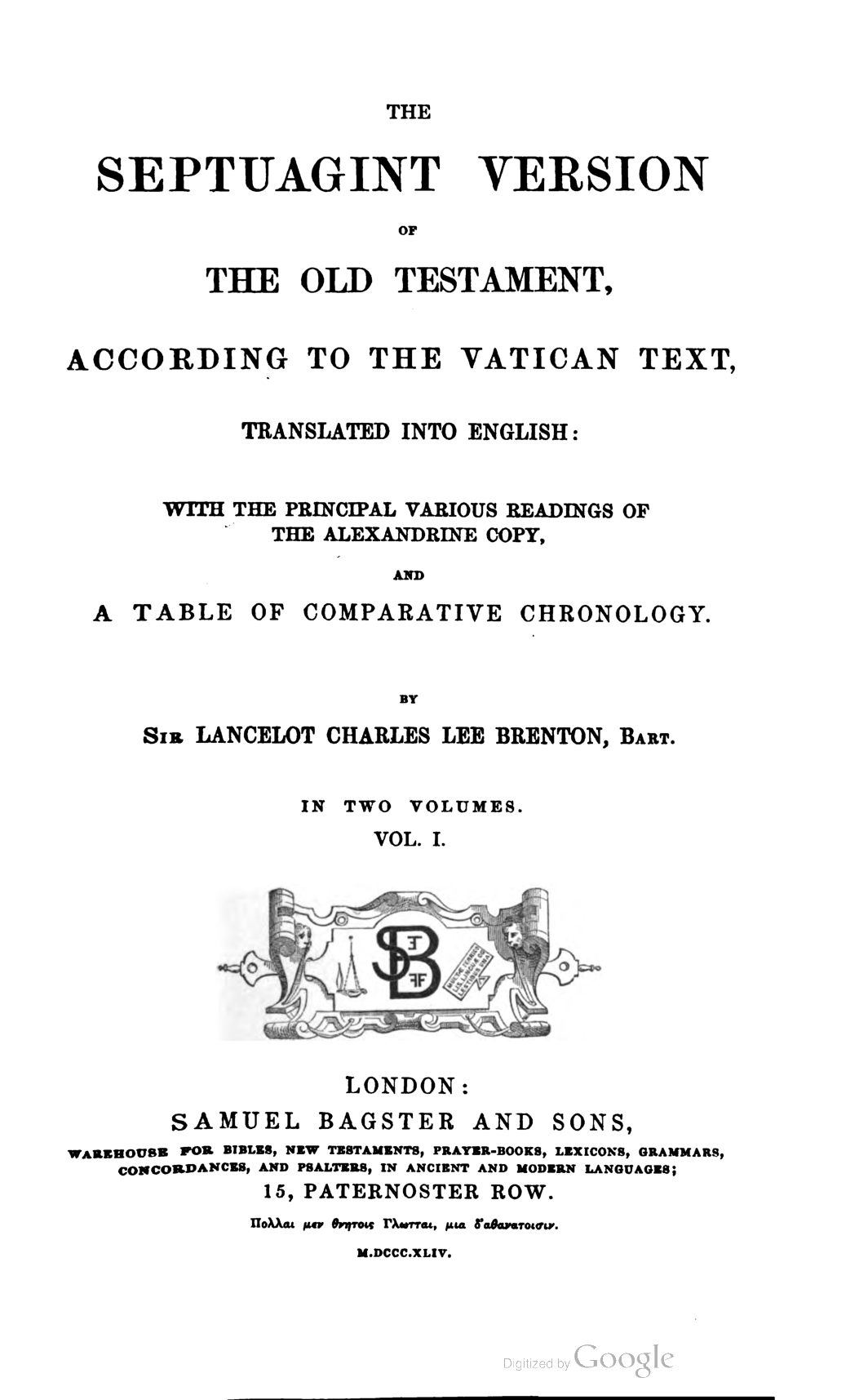 The Septuagint Version of the Old Testament, According to the Vatican Text, Translated Into English - Volume 1