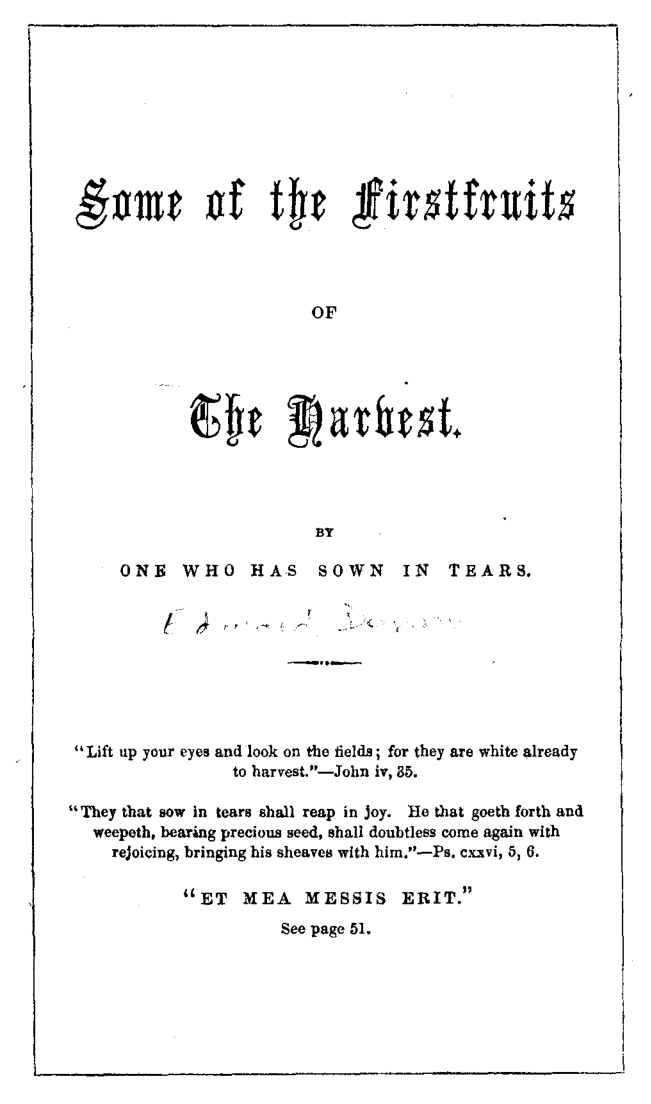 Some of the Firstfruits of the Harvest, by One Who Has Sown in Tears