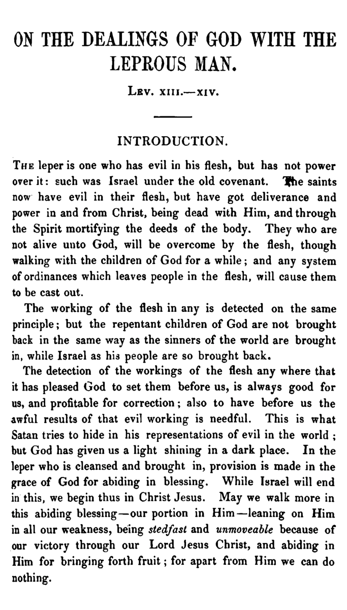 On the Dealings of God with the Leprous Man. Lev. 13-14