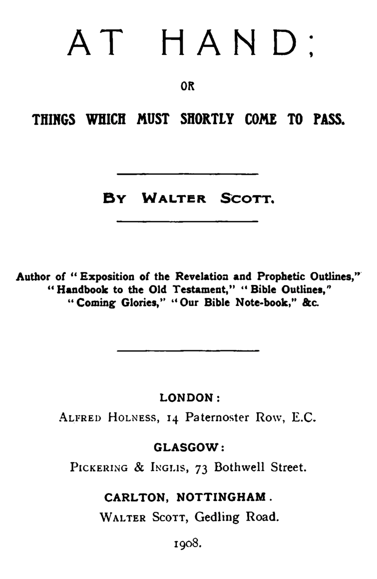 At Hand; Or, Things Which Must Shortly Come to Pass