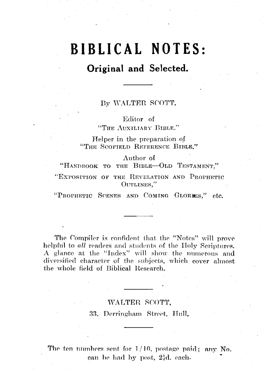 Biblical Notes: Original and Selected