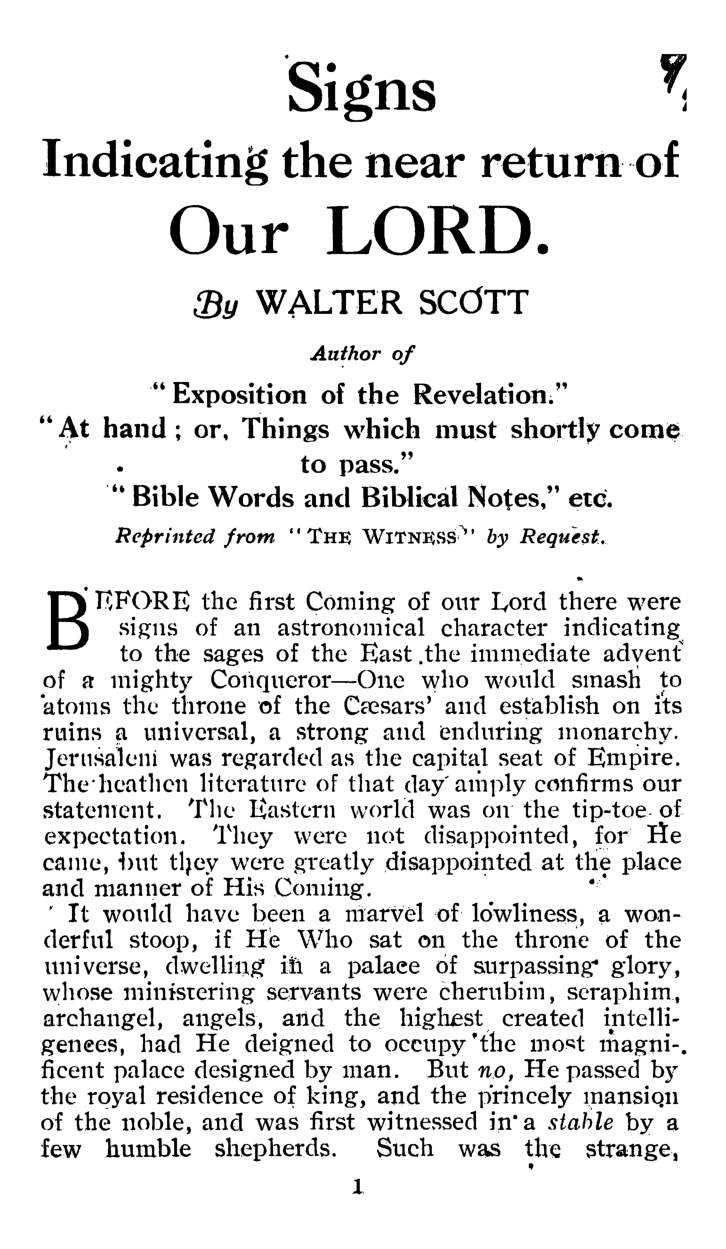 Signs Indicating the Near Return of our Lord