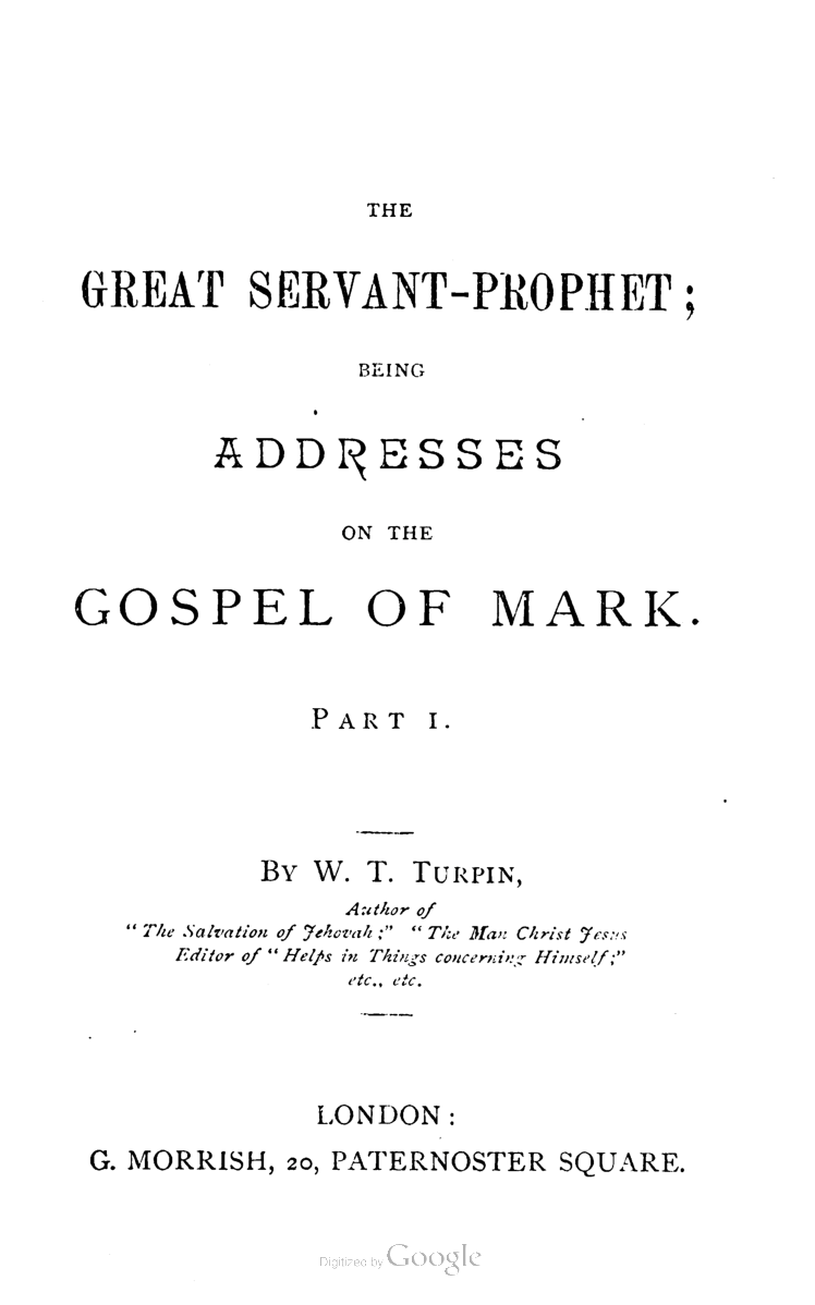 The Great Servant-Prophet; Addresses on the Gospel of Mark. Part 1