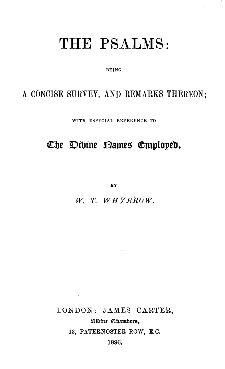 The Psalms: Being A Concise Survey, and Remarks Thereon; with Especial Reference To The Divine Names Employed