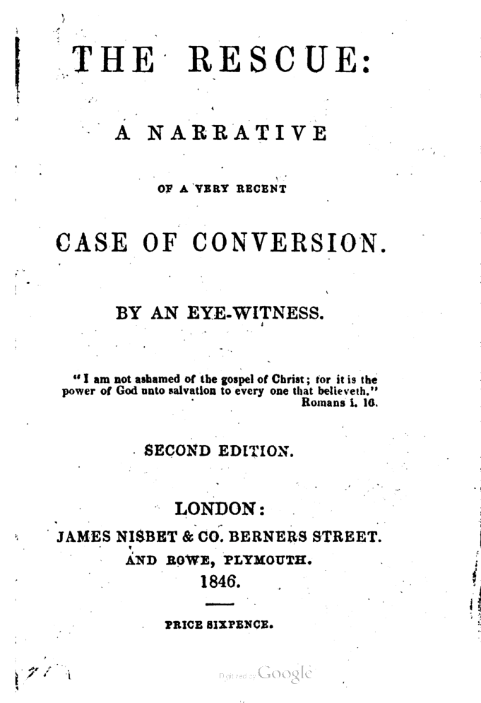 The Rescue: A Narrative of a Very Recent Case of Conversion. By an Eye-Witness.