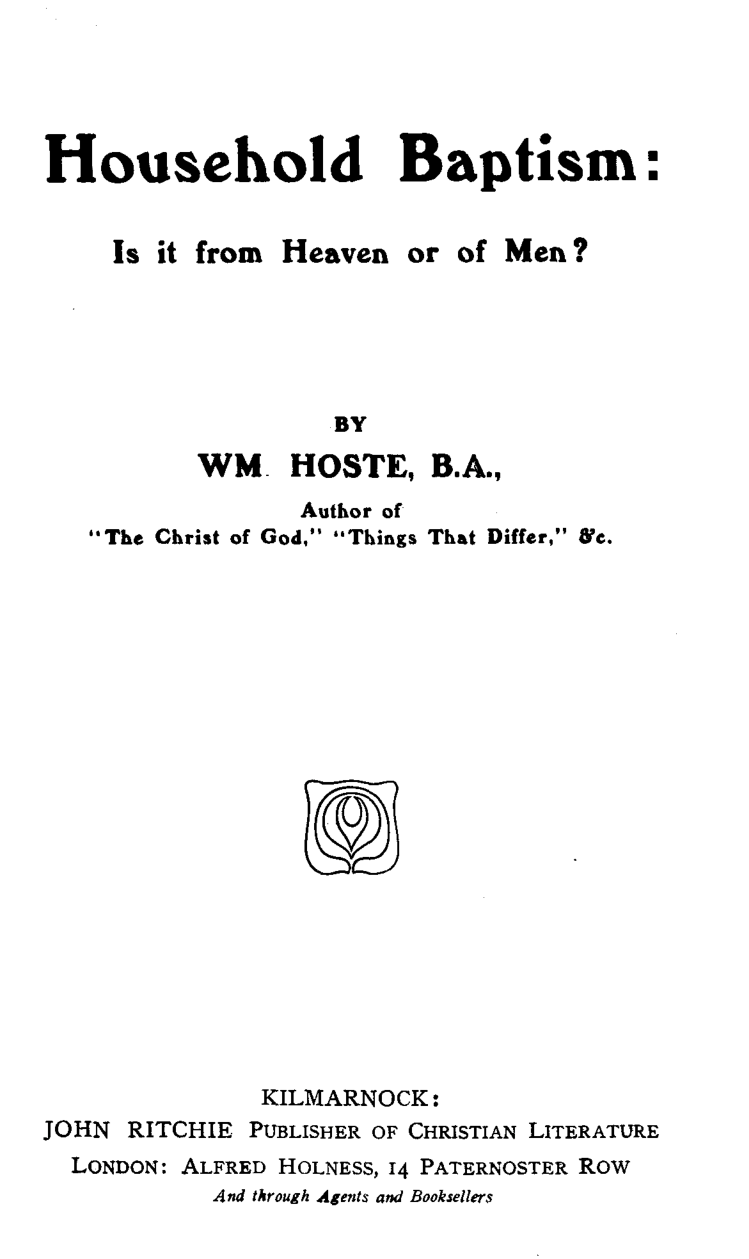 Household Baptism: A Scriptural Inquiry as to the Claims