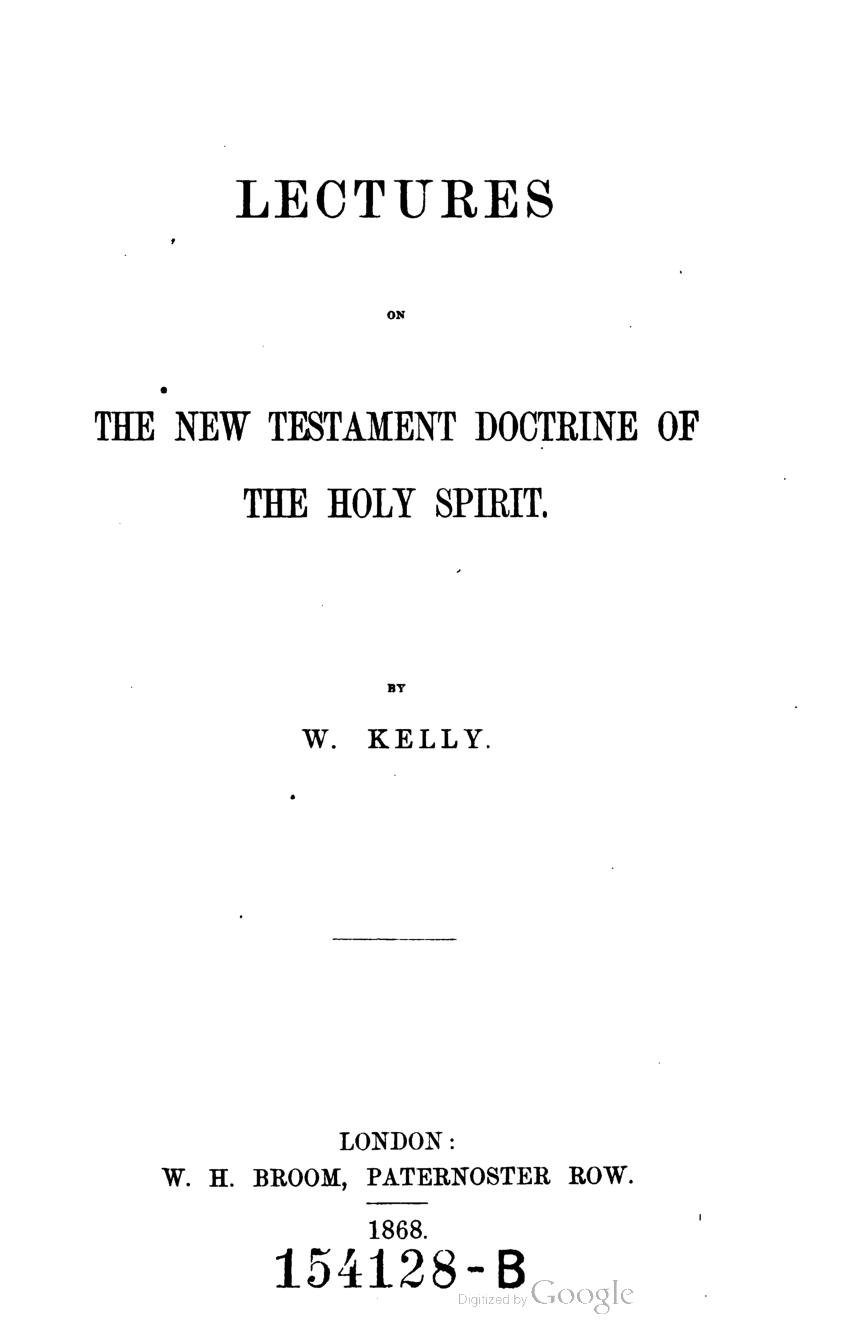 Lectures on the New Testament Doctrine of the Holy Spirit