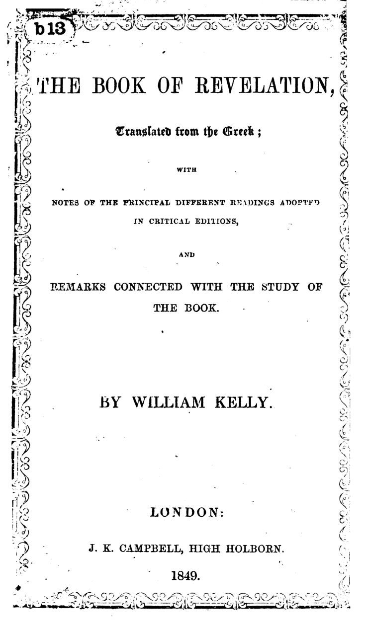 The Book of Revelation, Translated from the Greek; with Notes of the Principal Different Readings Adopted in Critical Editions, and Remarks Connected with the Study of the Book