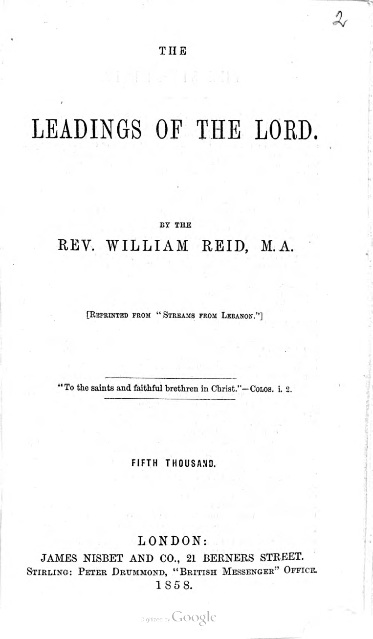 The Leadings of the Lord. Reprinted from "Streams from Lebanon."