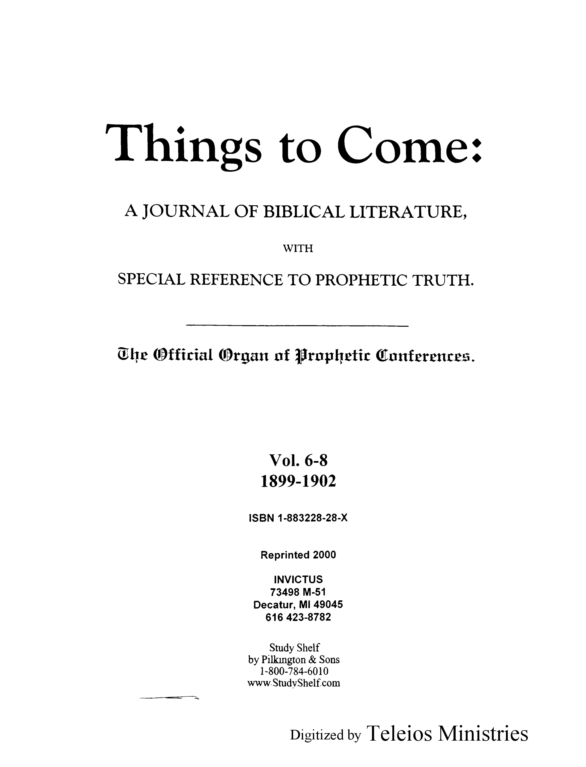 Things to Come: a Journal of Biblical literature, with special reference to prophetic truth and "that blessed hope"