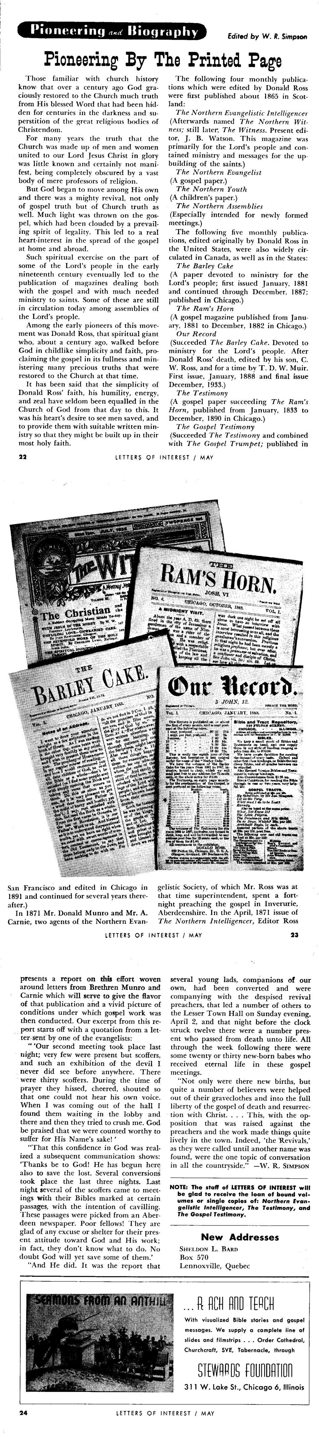 Interesting article on some of the early periodicals which at least has a picture of "The Ram's Horn" .. one I've never seen a copy of. Also never seen The Testimony, The Gospel Testimony, The Gospel Trumpet, The Northern Youth etc.